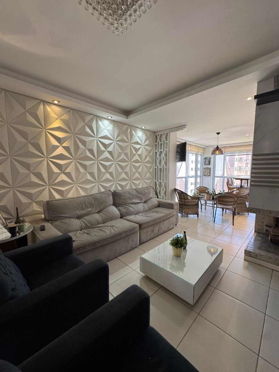 🔥 Sala de estar com lareira, pra noites aconchegantes e cheias de charme